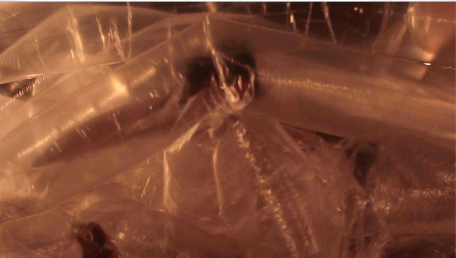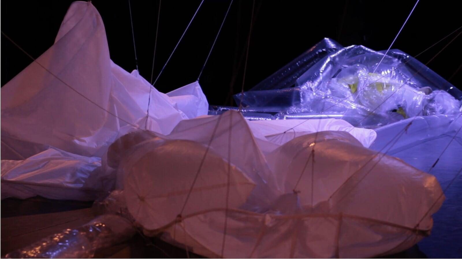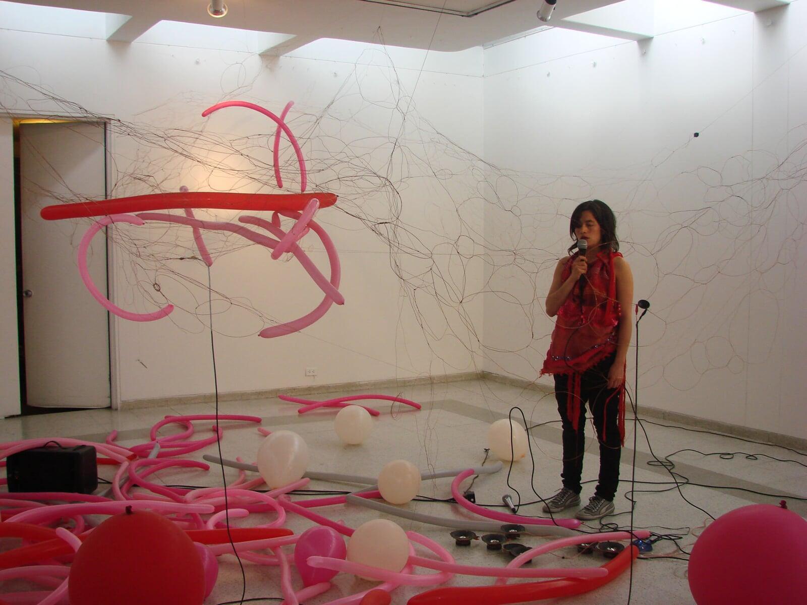 The performer touches and breaks portions of the web, provoking a subtle noise that progressively becomes a concert for noise. Everything concludes with a song in which the performer’s voice transitions from a lyrical and sweet tone to guttural screaming. The delicate actions experienced at the beginning are transformed into an event where all elements (her voice, the concert, the installation, and the space) collapse because of vibration.