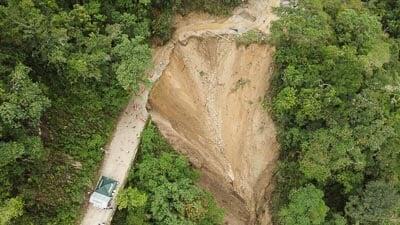 Image of a part of the road Málaga-los Curos that crashed recently because of the rain season.